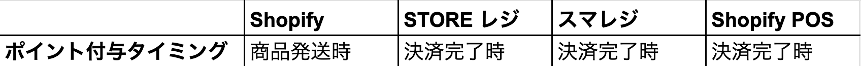 Shopify または POSレジ によって、ポイントが付与されるタイミングが異なります。