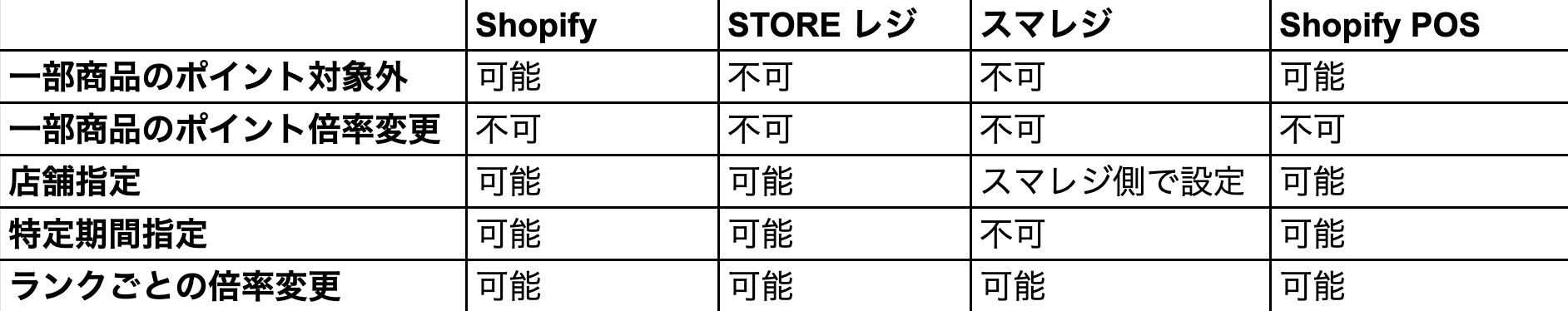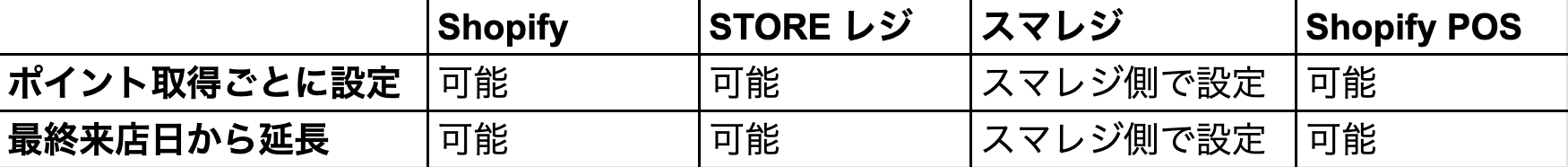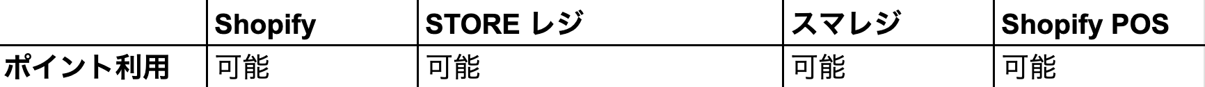 Shopify または POSレジ によって、溜まったポイントを1ポイント1円での利用可否が異なります。